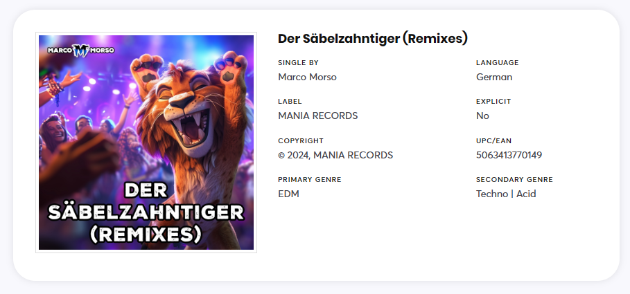 Contact us: Marco Morso | c/o MANIA RECORDS, Attn. Marc Milde | E-Mail: info@mania-records.de